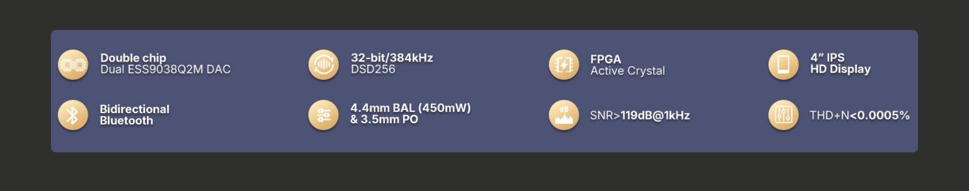 - Compatibilidad nativa con DSD256 y audio de alta resolución